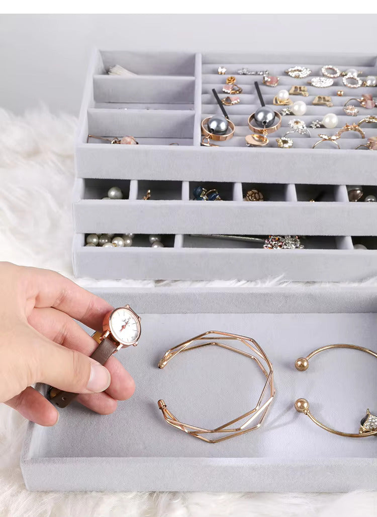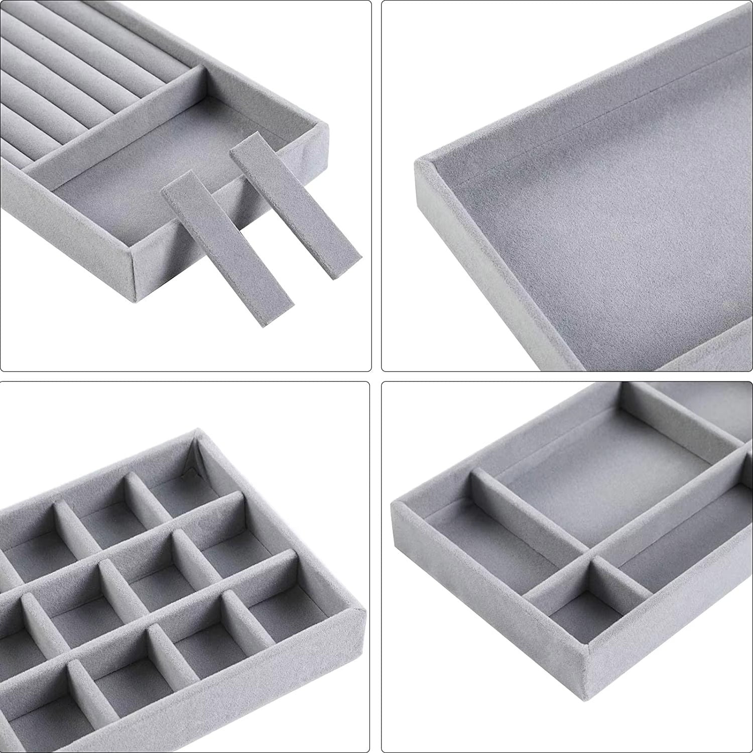 4 Pcs Stackable Velvet Jewelry Organizer Tray For Drawer